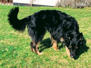 Fødslen er i gang! Vi forventer hvalpe i nat! Wilma er dygtig og alt går fint – men forfærdeligt langsomt synes jeg.